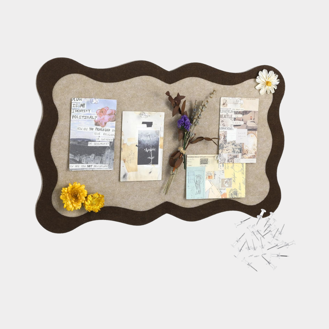 Scalloped Felt Bulletin Board Foldable Brown Pin Cork Board